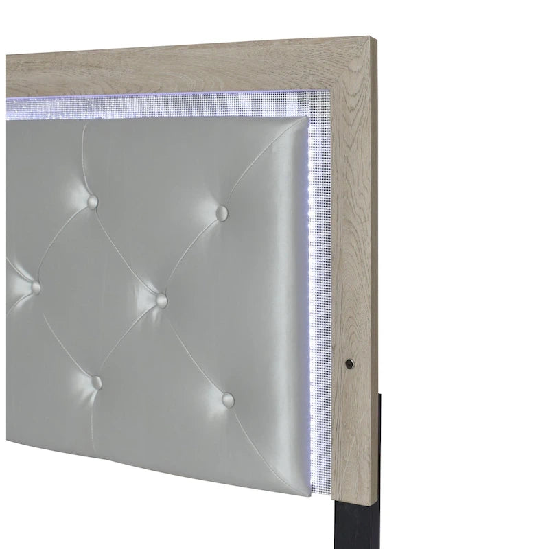 Bernard 4 Piece Cream LED Faux Leather Upholstered Tufted Panel Bedroom Set