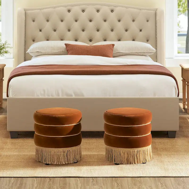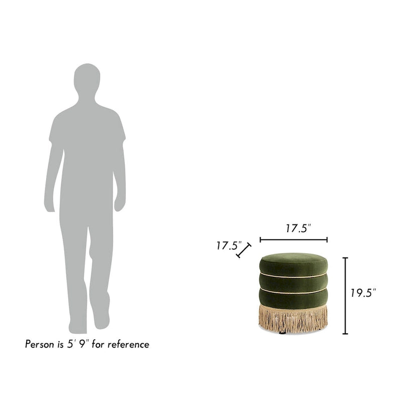 Edward 17.5 Round Upholstered Ottoman with Gold Bullion Fringe