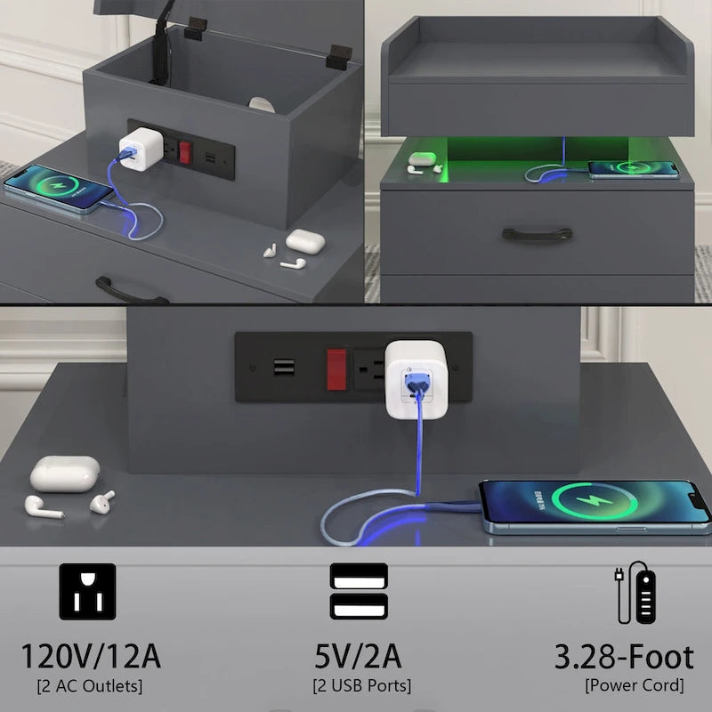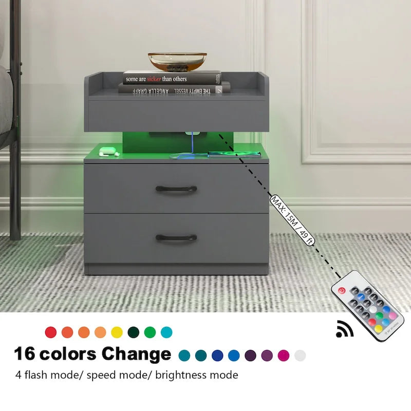 Smart Nightstand with Adjustable LED Light StripStorage Cabinet with 2 Drawers,Sofa Side Table, Coffee Table
