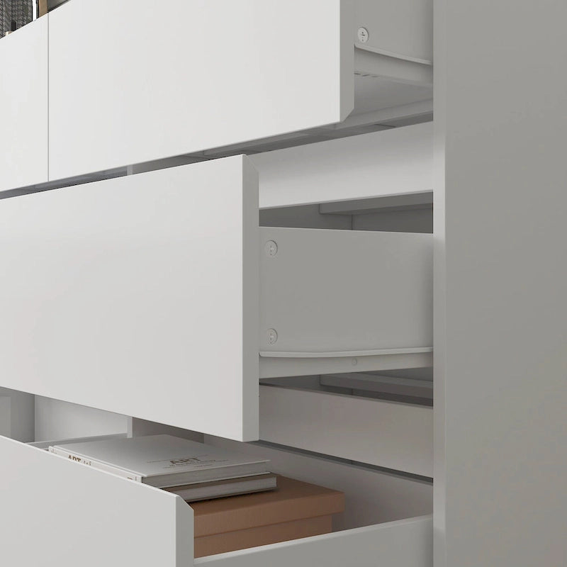Store folded clothing and extra blankets in the 6 spacious drawers that feature durable metal slides.
