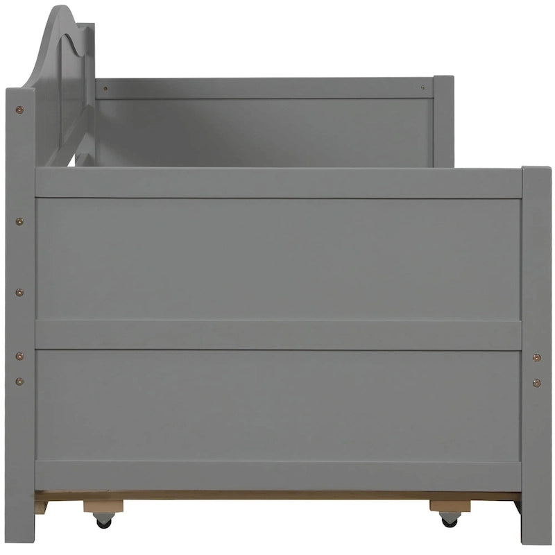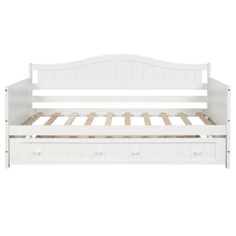 - If you need extra sleeping space or your kids love sleepovers, this daybed with handy pull-out drawers is perfect for your home. High-quality, solid pine legs and a strong, durable frame ensures stability and durability for long-term use. Slat kit included so box springs are not required. This daybed is designed with a clean silhouette and a hue of elegance. It suits all styles of home decoration, and completes the look of any bedroom.