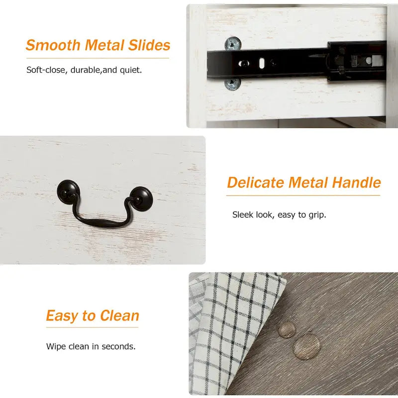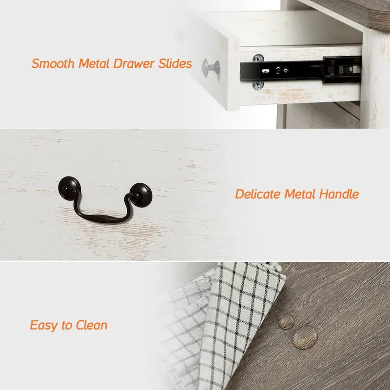 - Charming Farmhouse Style: The white finish combined with metal handles gives this farmhouse TV stand a rustic yet modern touch that complements a variety of home dcor styles. Its an elegant addition to any living room, bedroom, or hallway