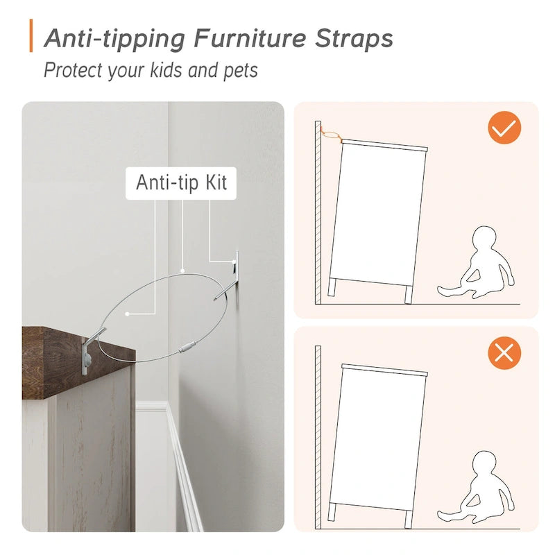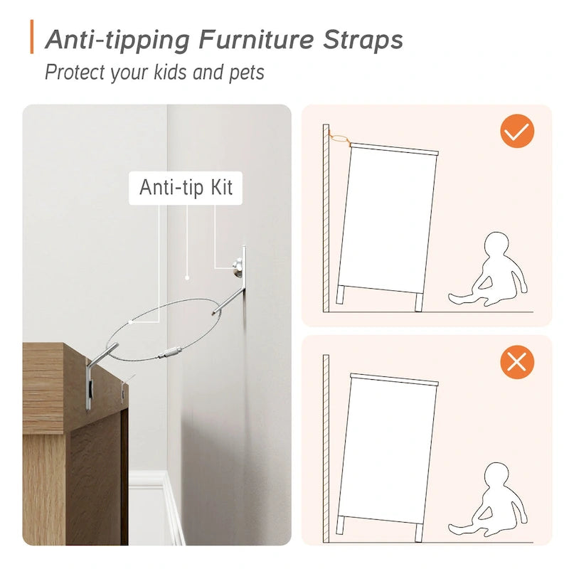 - Anti-Tipping Safety Feature: Designed with a wall-anchoring anti-tip device, this entertainment center ensures safety, preventing accidental tipping and offering peace of mind in homes with children or pets